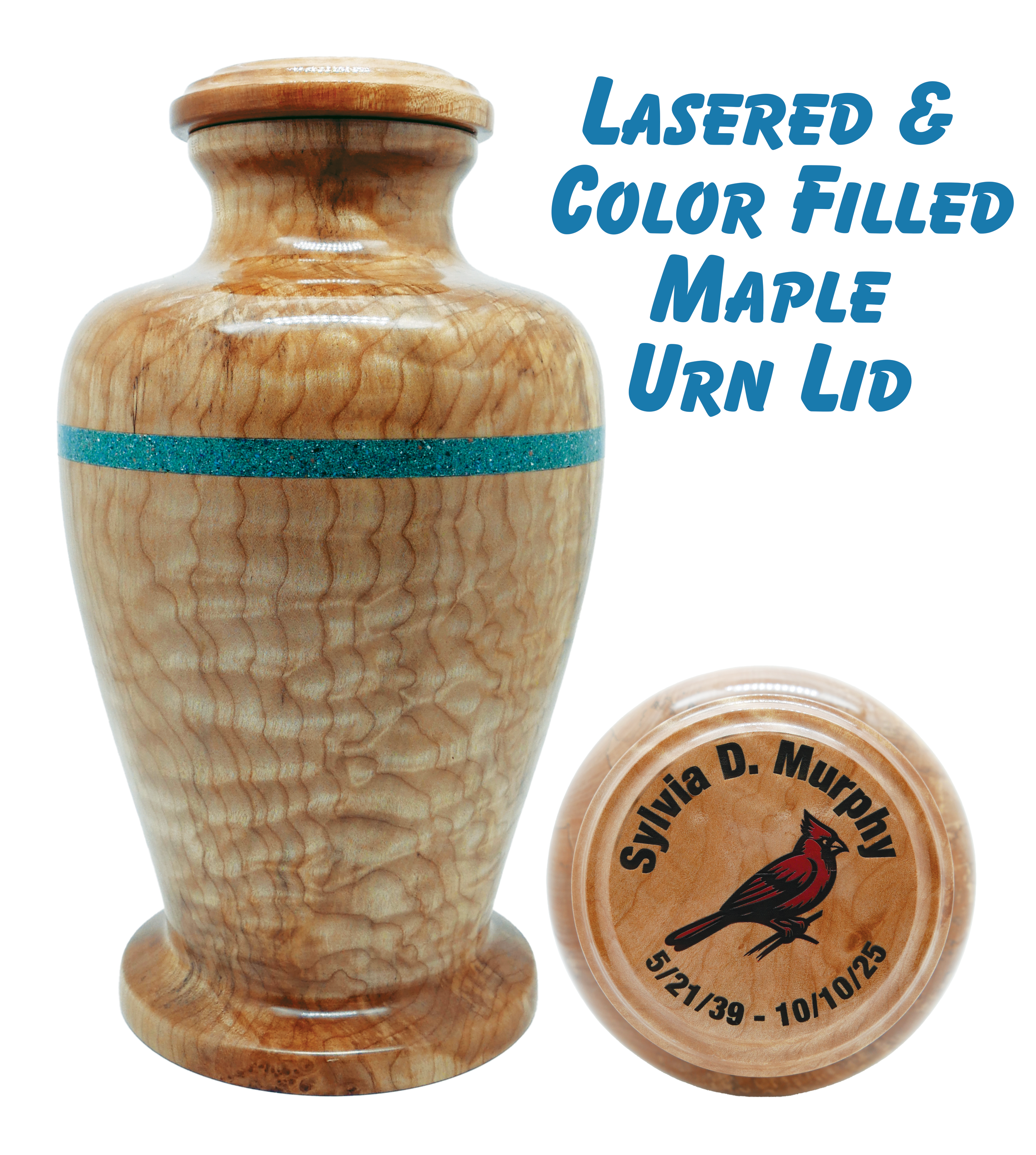 Lasered & Color Filled Maple Urn Lid